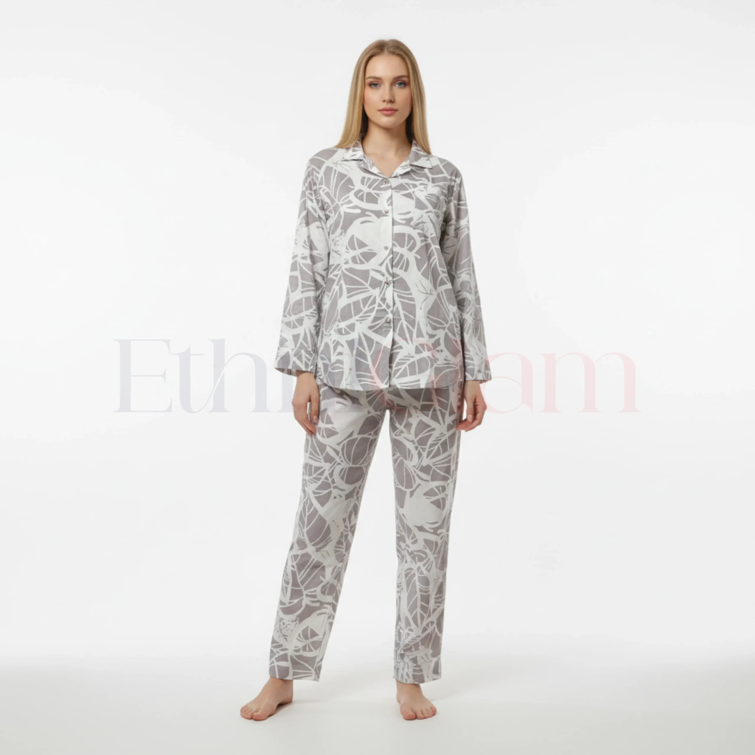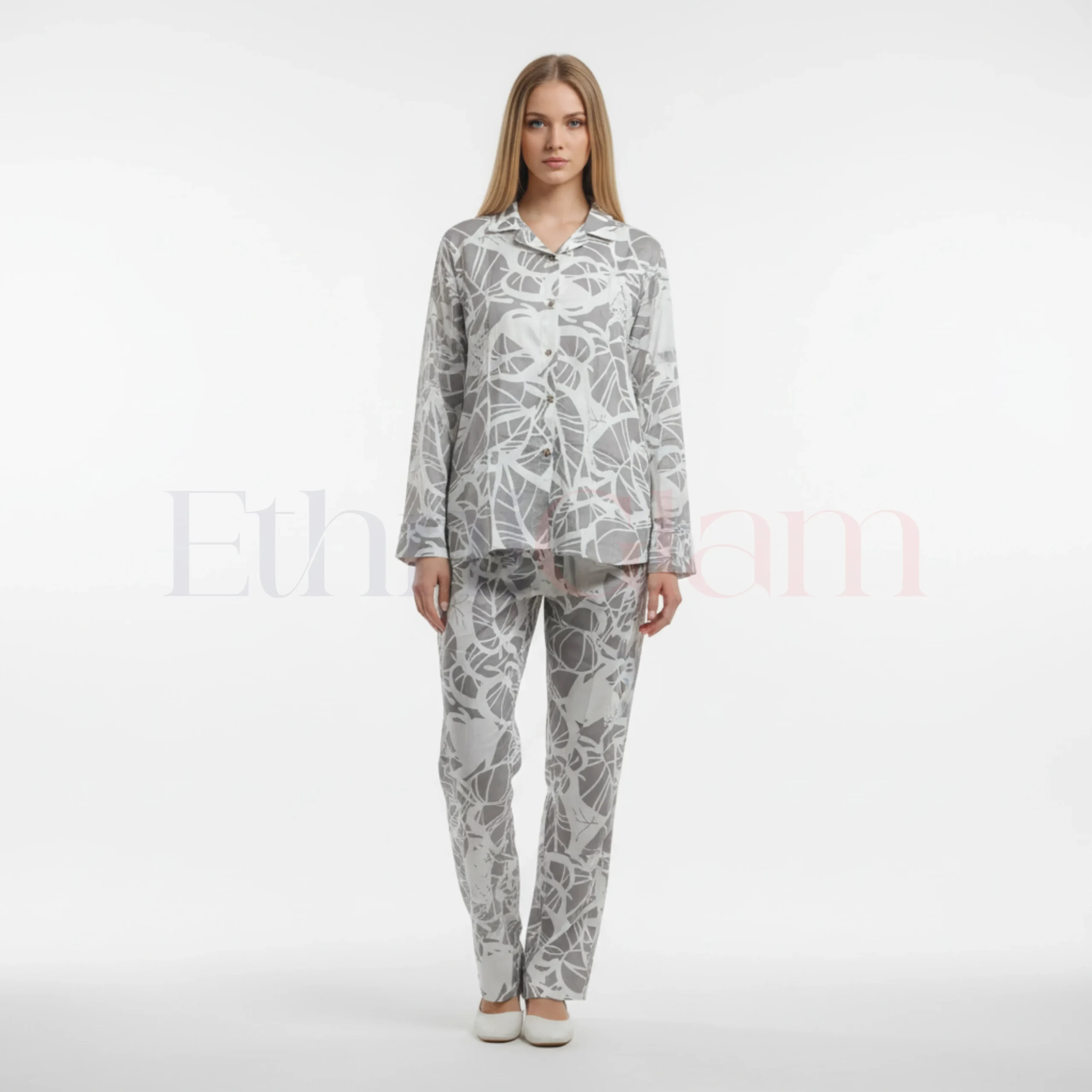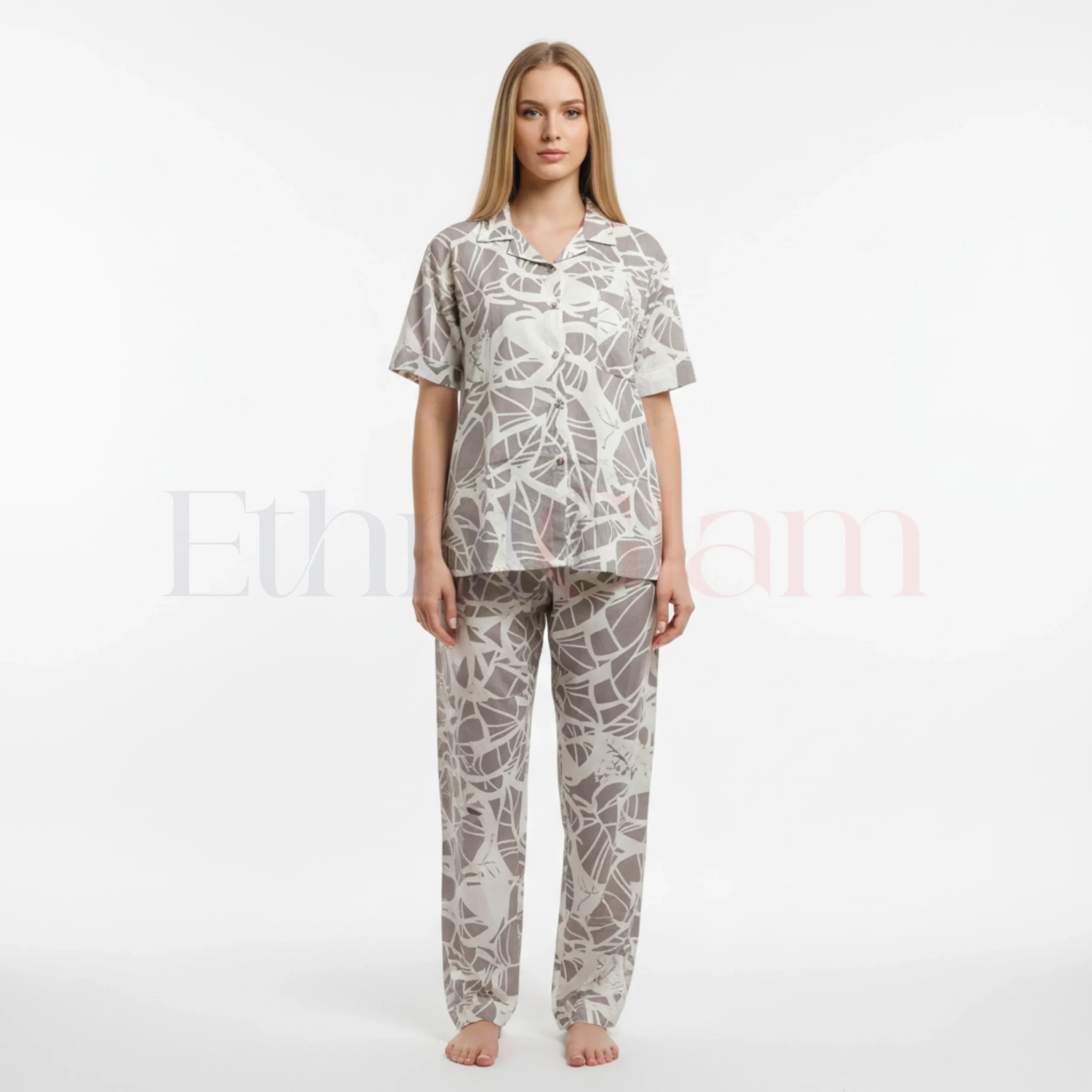 Upgrade your wardrobe with this stunning Popcorn Co-Ord Set – Ash Grey with White Abstract Print. Made from ultra-soft popcorn textured fabric, this set includes a breezy half-sleeve shirt paired with comfortable wide-leg elastic waist pants. Designed for maximum comfort and style, it offers the perfect relaxed silhouette for any occasion.Product Highlights